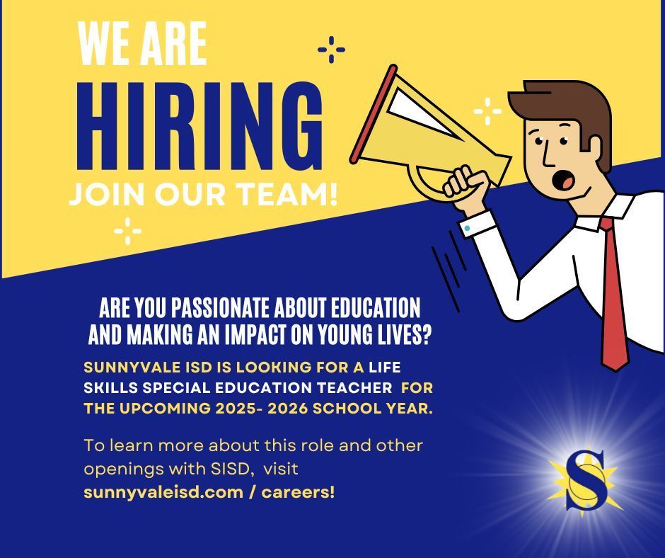Sunnyvale ISD campuses and offices will be closed through January 5, a staff trade day. January 6 is a student holiday and staff development day. Classes will resume on January 7. We look forward to welcoming our Raiders back in 2026!